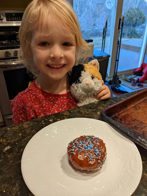 Eliza notified me the day of his birthday so we made donuts with Nutella glaze and sprinkles... another Eliza creation.